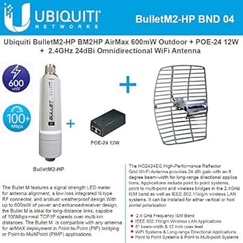 Amazon.com: BulletM2 High Power Access Point 2.4 GHz 28dBm Outdoor airMAX Radio with PoE 24V 12W and Reflector Grid WiFi Antenna 24dBi 2.4Ghz: Computers & Accessories